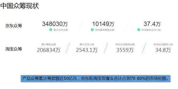 现在排在第一位的是京东众筹,第二位是淘宝众筹,第三位是苏宁众筹。