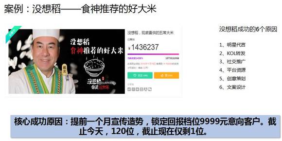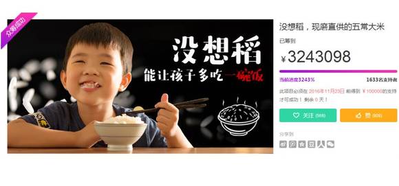 “没想稻”大米刚刚结束众筹,截止目前众筹了324万多。其成功原因有六个: