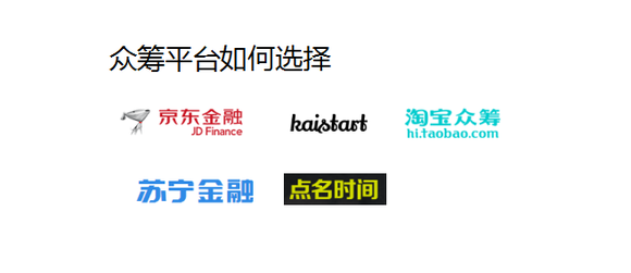 目前国内的众筹平台主要有京东、淘宝、苏宁开始众筹、点明时间等。其中三大平台的区别是: