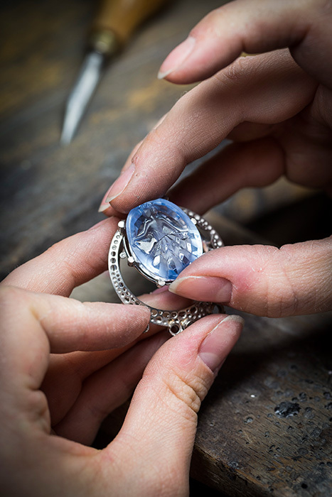 梵克雅宝“黄金之手”为雕刻切割蓝宝石调整爪镶角度