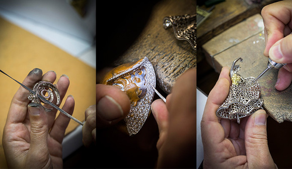 因此一位工匠便要花上数百甚至数千小时的时间来制作一件经典独特的珠宝。全世界只有极少数专业大师才能运用此项隐密式镶嵌法,这些专业大师被称为“ Grandes mains ( Great hands ) – 拥有不凡工艺巧手的工匠”。