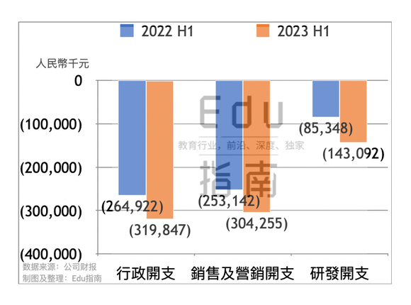 销售与营销开支上半年为3.0亿元,同比2022财年同期的2.5亿元,增幅为20%。粉笔称该开支增加是因为其销量增加,向销售及营销人员的绩效奖励等雇员福利开支增加,以及其加强推广品牌及服务开支增加。