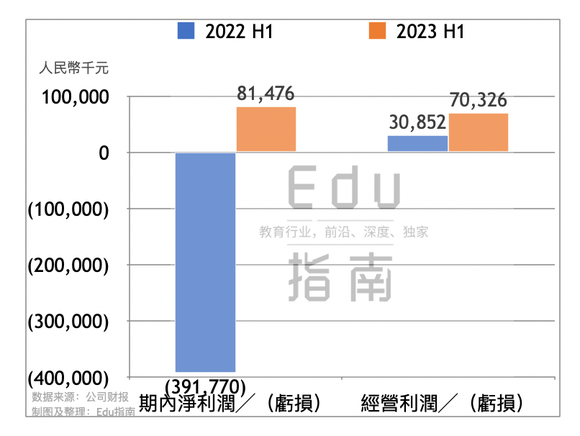 粉笔公司上半年经营利润为7033万元,上一财年同期为3085万元。该公司上半年期内净利润为8148万元,上一财年同期为净亏损3.9亿元,本期该项由亏损转向盈利。