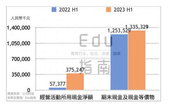 上半年粉笔公司经营活动现金净流入额为3.8亿元,上一财年同期净流入5738万元,本期该项现金净流入显著增长。截至本期业绩报告,该公司期末现金及现金等价物额为13.3亿元,上一财年同期为12.5亿元,本期该项资产额增幅为7%。