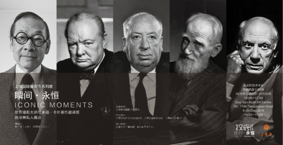 加拿大多伦多优素福·卡什博物馆作品捐赠者、全球卡什人像摄影原作最大的收藏家陈淳焘(Shelton Chen)将部分收藏原作以“瞬间·永恒”为题,于12月8日至12月30日在上海朵云轩艺术中心举办“瞬间·永恒——加拿大世界人像摄影大师优素福·卡什原作邀请展”。此次展览展出的百余幅作品是从20世纪30年代至80年代卡什拍摄的4000余幅世界名人照片中精心挑选出来的,上述这些人物的肖像均是本次展览的展品。