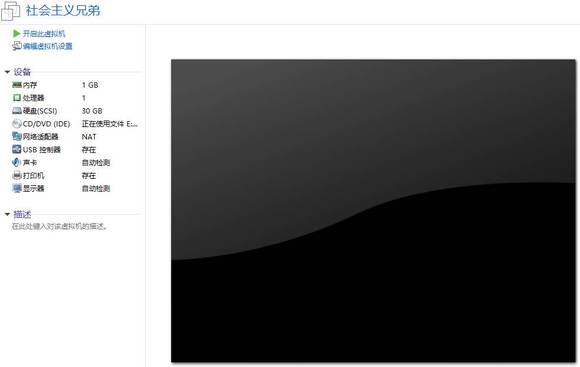 硬件配置上没什么特别的,分配了 30 G 的硬盘,1核心,1G 内存,联网方式选择的 NAT (可以理解成共享本机网络)。