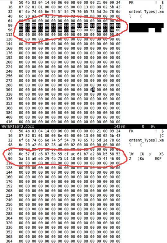 用 16 进制编辑器打开发现本来是空白字节的地方被插入了数据