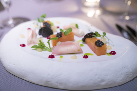 这家餐厅的主厨也是整个Belle Mare 7家餐厅的总厨师长,同时管理180名后厨人员。感觉大厨繁忙的应该不会有空来餐桌打招呼,谁知道他不仅仅是客气一下,而是很用心的在听我们的对话,因为我牛奶鸡蛋不耐受,所以他从头盘、主菜到甜品每一个都细心的叮嘱,帮我换成了少奶无蛋的料理。我跟朋友开玩笑说:“感觉自己活活把一个法餐大厨逼出了法式日料风。”
