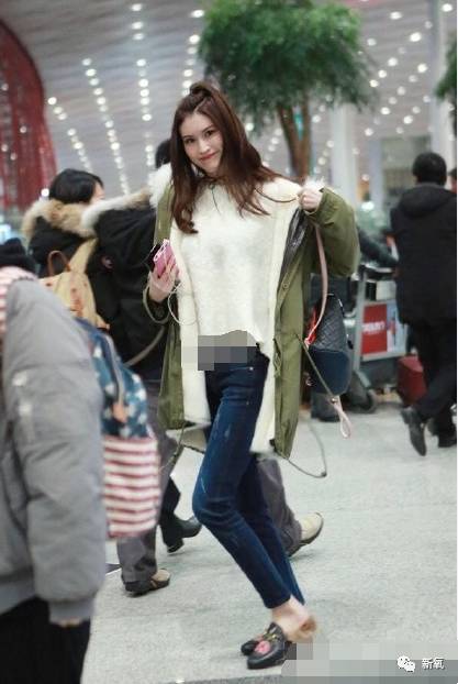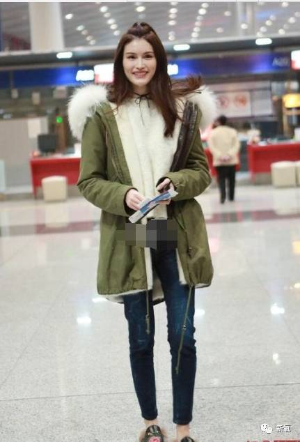 何穗是真的白啊!今天看到没有ps的机场街拍照,肤色和旁边的灯光一样亮。