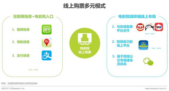 艾瑞咨询认为,在线购买电影票的模式并非一成不变,未来会越来越多元化。