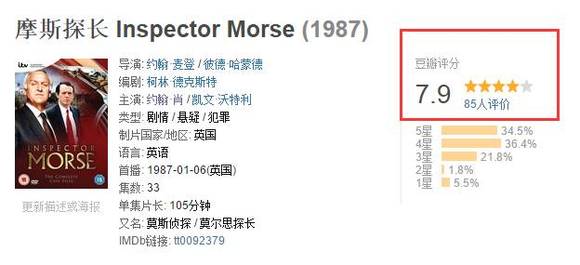 探长摩斯和上司Thursday一起探案的故事。2012年开始播出第一季,目前已有三季并且每季分数都很高,每季四集每集90多分钟,简直是在用拍电影的心情去拍一集电视剧啊……