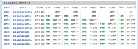 刘彦春在管6只产品中,除了代表作——景顺长城新兴成长之外,亏损最多的是景顺长城绩优成长混合。