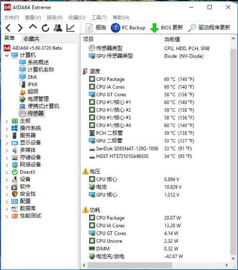 单烤CPU的时候,温度在60度,频率保持在2.2GHz,室内温度为26度,功耗20W
