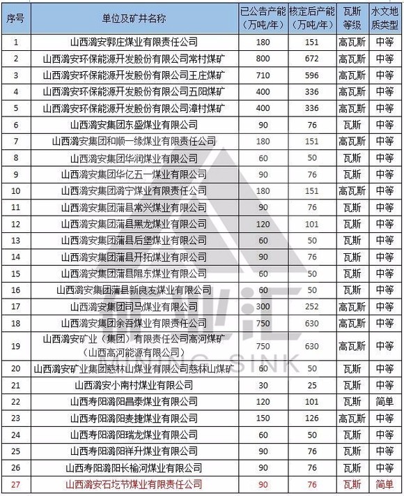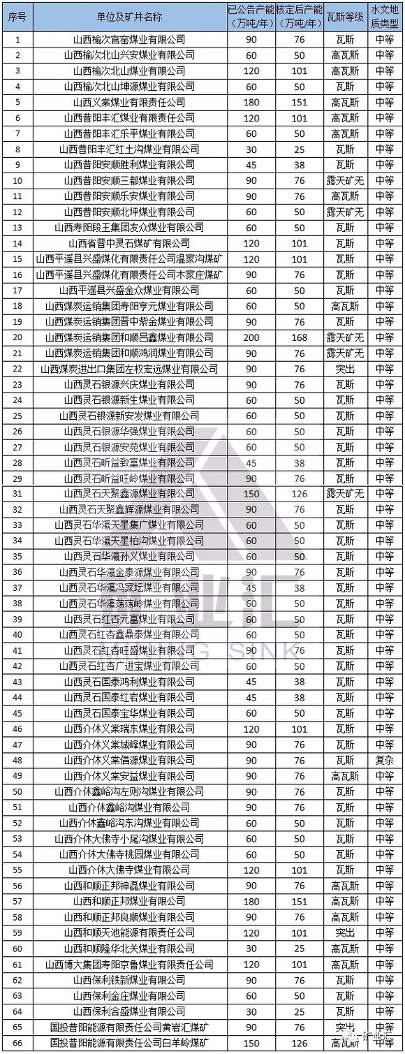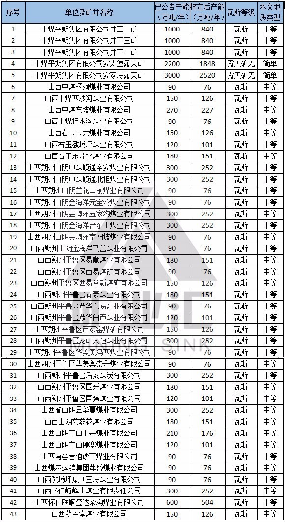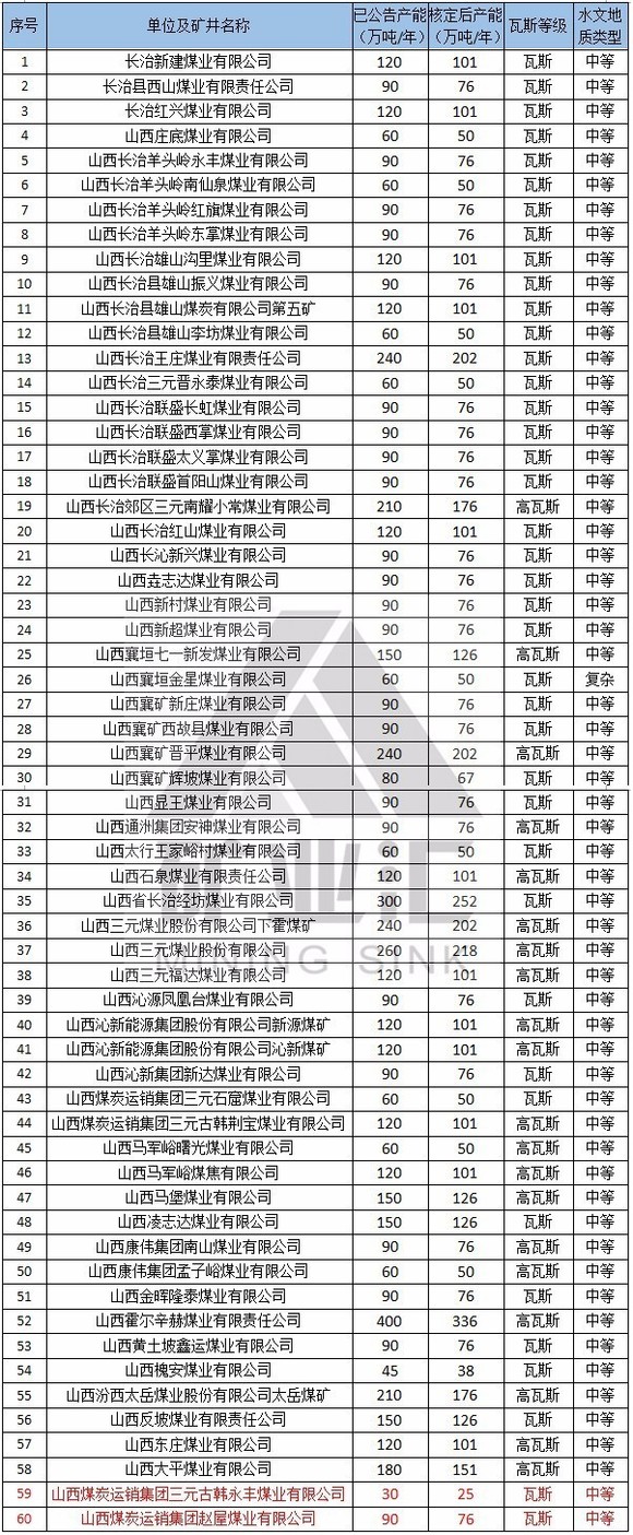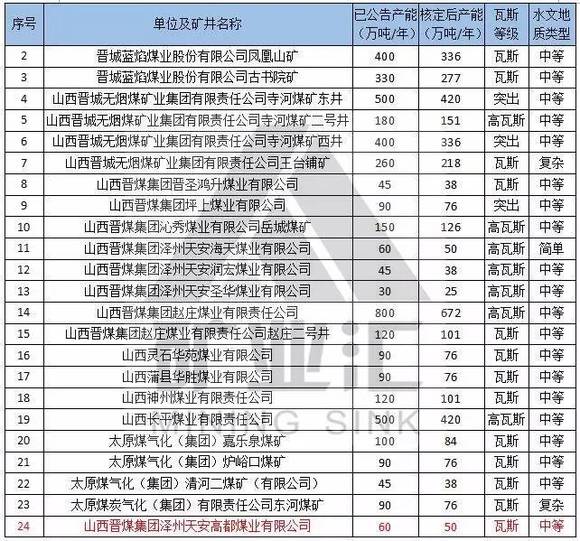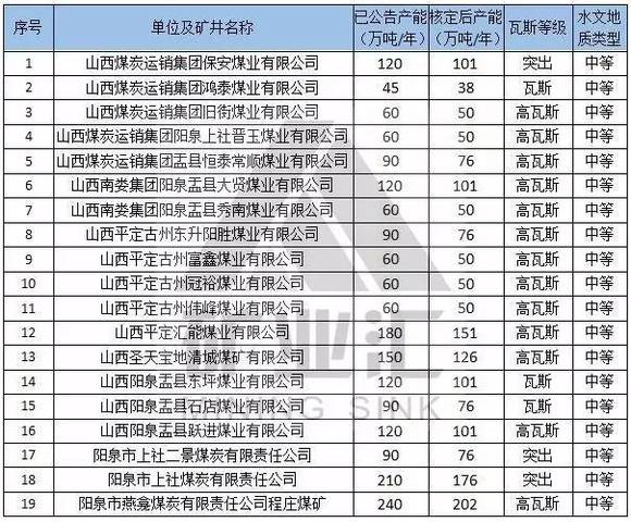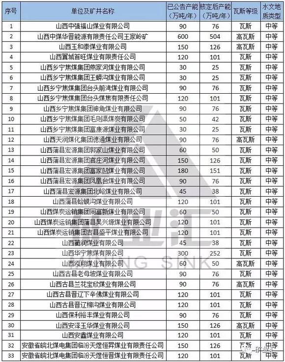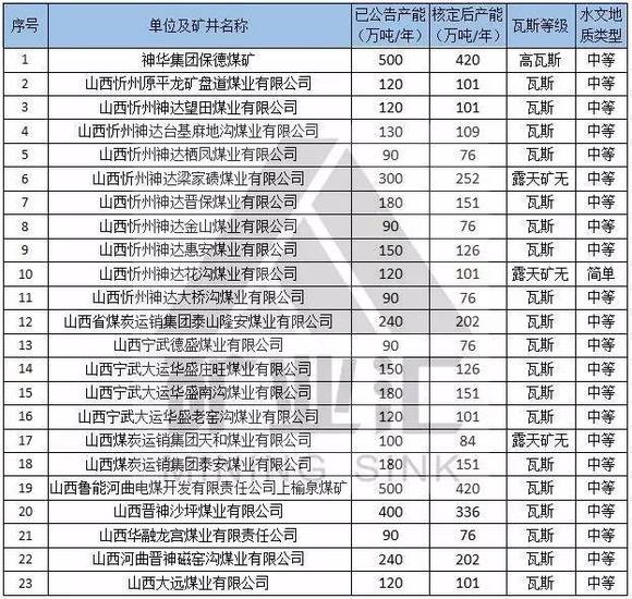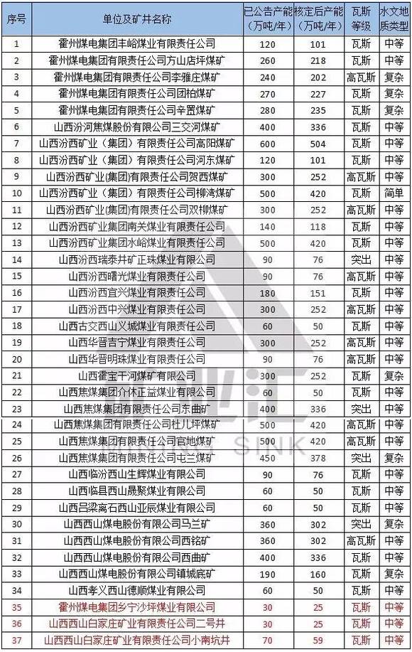 本文备注:1、水文地质类型复杂及以上矿井、煤与瓦斯突出矿井按照不超过登记公告生产能力的80%组织生产。2、红色代表2016年核定产能后退出的煤矿。