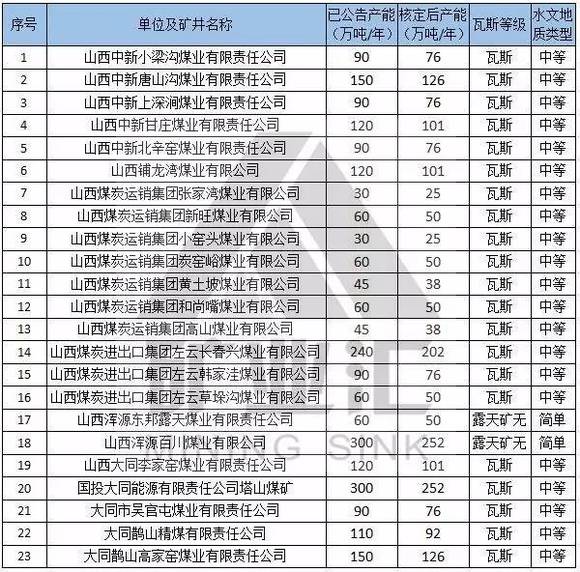 2016年山西退出产能2325万吨/年,关闭25座煤矿,其中9座煤矿没有包括在这562座煤矿内!折算出山西现在在产煤矿有546座。