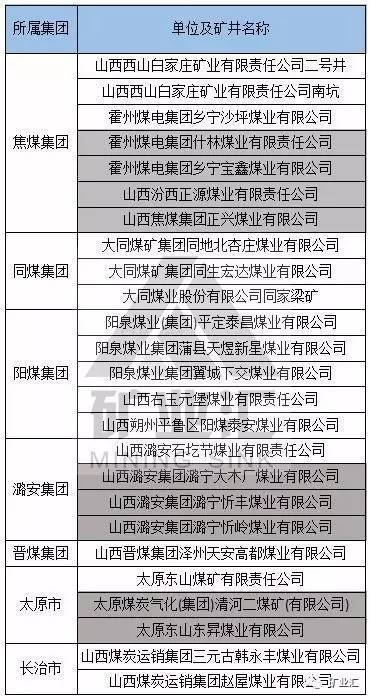 注:灰色代表2016年去产能关闭的煤矿但不在截止3月31日核定产能后公布的名单内。