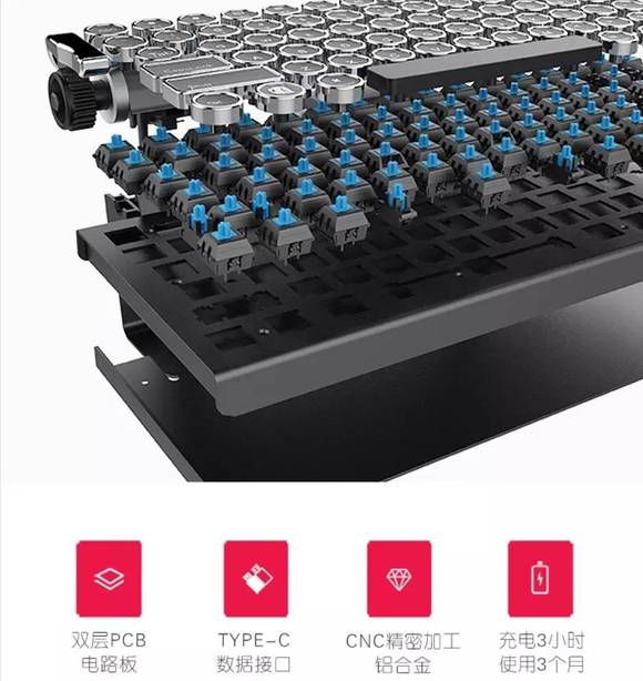 作为一款定位高端市场的产品,大象复古机械键盘在一些细节上也充分体现出了人性化的设计理念。