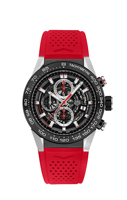 如果你喜欢计时功能的码表,就别再追求让它显得尽量低调,相反,应该将它尽可能的显露出来。2015年,豪雅对卡莱拉HEUER-01系列做了全新的改变,尤其是采用12个模块化结构的概念,让这块腕表具备了更多变化。今年,又在表壳的几个关键位置加入耐磨的陶瓷材质,这对运动腕表来说尤为重要。选择红色的橡胶表带,是因为和红色的指针有很好的呼应,细节处很精致。如果你还是希望更炫酷,当然有黑色的橡胶表带可以选择。价格约 ¥ 38,300。