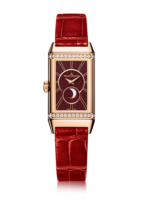 积家 Reverso 系列最近几年一直是高收入女性首选腕表,方形小巧的表壳精致优雅,是对女性知性包括的气质的最好诠释。这枚 Reverso One 月相双面翻转腕表玫瑰金款的线条修长精致,珍贵的细节装饰让其成为腕间的华丽珠宝。这枚腕表灵感源自1930年代为女性打造的Reverso翻转腕表原型表款,第一面表盘上,宛如手绘而成的阿拉伯数字搭配太子妃式蓝钢指针和精致的太阳放射状饰纹,呈现出简约优雅的风范;在第二面表盘上,修长的时标宛如闪耀的星光,将表盘装点成熠熠闪光的夜空。售价 ¥168,000。