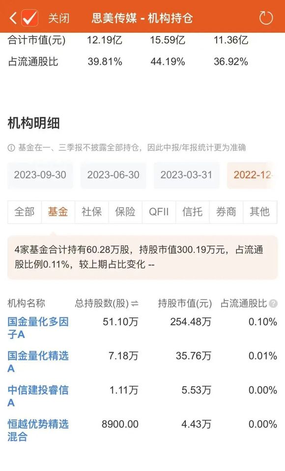 截至2022年末基金持有思美传媒情况。来源:Choice数据截图