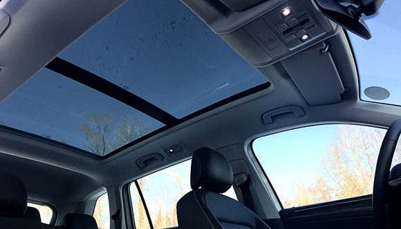 途观L的大空间同样体现在后备箱容积上——正常495L,后排座椅放倒1780L。5座SUV相对7座的优势就在于将鸡肋的第三排换成了更实用的后备箱空间。唯一不足的是,后排座椅放倒后与后备箱底部存在高度落差,因此如果想躺在上面仰望星空的话最好垫张垫子,不然就会搁着屁股。哦忘记说了,途观L全系标配全景天窗,面积达到1.17平方米。