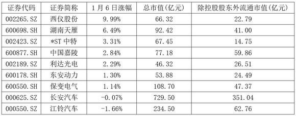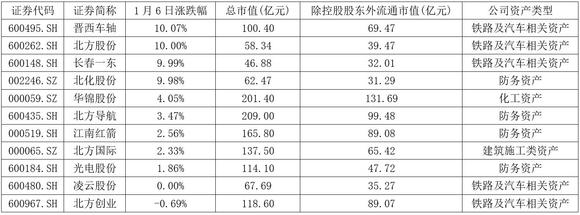 1月6日,二级市场对此给出了最直接的反应,兵工集团旗下上市公司多数实现上涨,其中,北化股份(002246.SZ)和晋西车轴(600495.SH)率先“一字板”封死涨停并保持到收盘,北方股份(600262.SH)以及长春一东(600148.SH)也以涨停收盘。