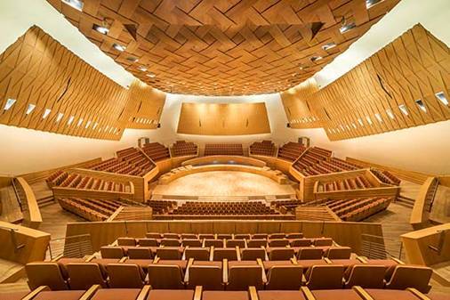 这个演奏大厅是以超棒的自然声效果出名。它的建筑声学由日本永田音响公司设计,永田以通过建筑自身的综合效果和声学设计,将没有任何电声处理的声音传到音乐厅的每一个角落著称。