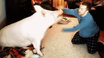 在视频中,农夫在给母猪输入精液时,还伴随着各种姿势的爱抚。。。。