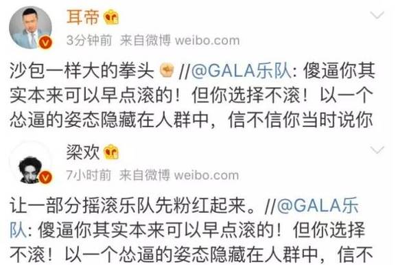 其实,比起一般主流明星的粉丝,这些独立乐队/音乐人的歌迷往往对于偏激的言论有着更高的容忍度,这些“敢于直言”的艺人常常是其本身某种欲望的投射。但根据一般的经验,这些乐队/音乐人不是“成神”、便是成为舆论耻笑的对象。再回到这次Gala引发的风波,不要忘了,他们微博爆粗的前提是自己先做错了,挨了打还不站好,我们是不是可以“期待”一下接下来的剧情?