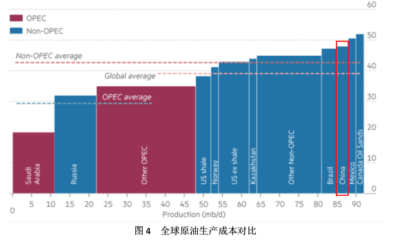 中国原油生产成本高于全球平均产油成本,且储量偏低,进口原油相对更具经济效益。