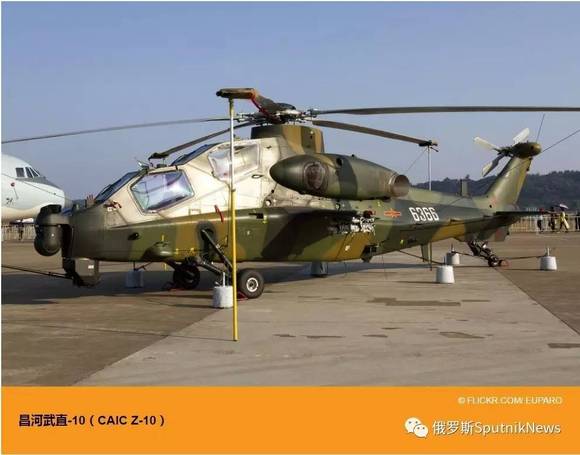 昌河武直-10(CAIC Z-10)——以俄罗斯卡莫设计局方案为设计基础的昌河武直-10,是中国生产的第一批采用串联式座舱布局的武装直升机,于2011年2月列装中国人民解放军。