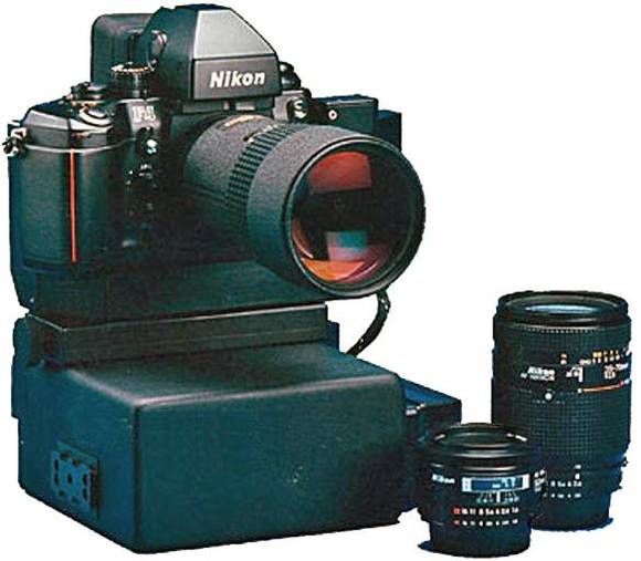 再后来,Nikon 推出了单反,还改装了 Nikon F4 ,让美国 NASA 带着这玩意上了天,成为了第一个进入太空的全数码相机~