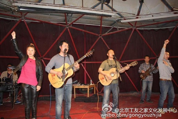 在演出活动现场,他们给观众派发就业指导、法律知识等资料,还在业余时间组织工友郊游踏青、职业培训、写诗作文、弹琴跳舞等活动,同时他们还为权利被侵害的农民工提供法律方面的咨询。