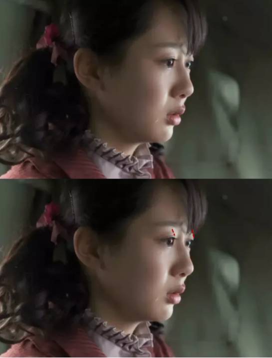 去掉红线会更清楚,这样看起来,杨紫的山根高度好像已经超过郭碧婷了唉,但是你们觉得谁的鼻子高呢?