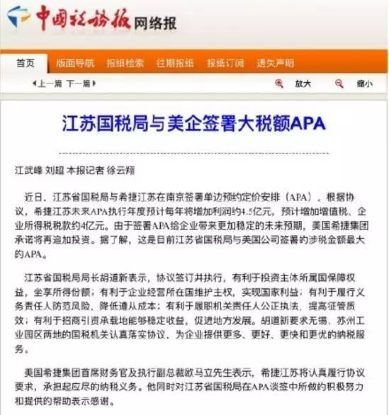 所以,江苏省国税局的反避税团队在与希捷公司经过一番交锋后,最终令希捷公司补交了15亿人民币的税款,还于2015年签订了一个名为APA的协议,防止该公司以后再用之前的办法避税。江苏希捷最终也接受了这个协议,并承诺补交税款。