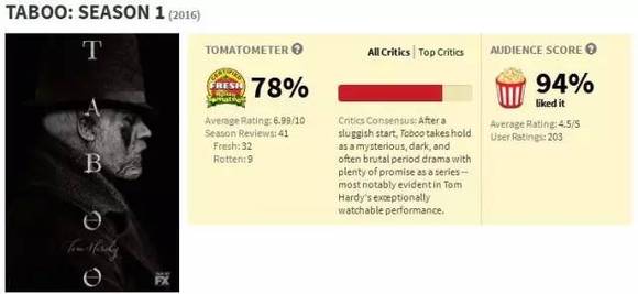 从第一集来看,[禁忌]把重点放在了渲染严肃气氛的艺术性上,整体观感略显僵硬,但愿后程越来越精彩。