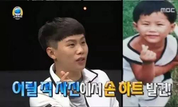 可是在韩国综艺《无限挑战》上,梁世亨也晒过一张童年比心照,论年龄他比权志龙还老。▼