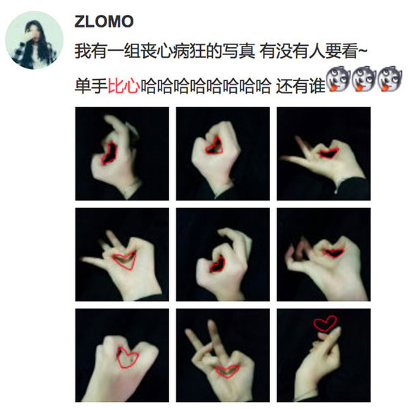 那之后,手指心就被大众认识和接受了,还由此衍生出了很多民间高手的花式比心。▼