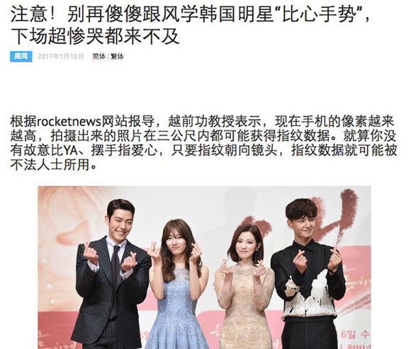 手指比心在国内被大部分人认识,是因为韩国艺人黄致列。▼
