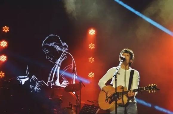 多年后,他重回昔日的舞台,这个时代的民谣早已经席卷了全国乐迷的耳鼓,他的身后是不输流行明星的百万雄师。