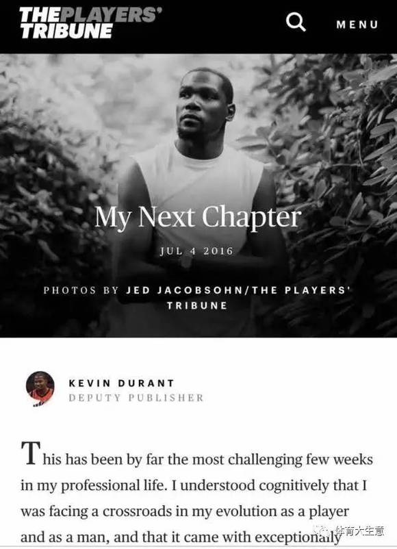 ▼身为TPT高管的杜兰特通过球员论坛宣布自己的下一站