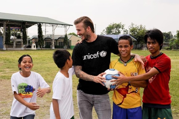 贝克汉姆是联合国儿童基金会的亲善大使,从2005年开始就一直投身于慈善事业,他在联合国儿童基金会的特别作用在于促进全球体育的发展,并保护弱势儿童,引导其更好地成长。此外,贝克汉姆是多家慈善机构的创始人和支持者,涵盖的领域包括疾病治疗、和平促进、发展健康等方面。贝克汉姆和维多利亚共同成立了帮助肢残儿童的基金会,在抗艾滋等领域共同发声;他们最年轻的儿子克鲁兹也首发新歌为慈善机构筹款。
