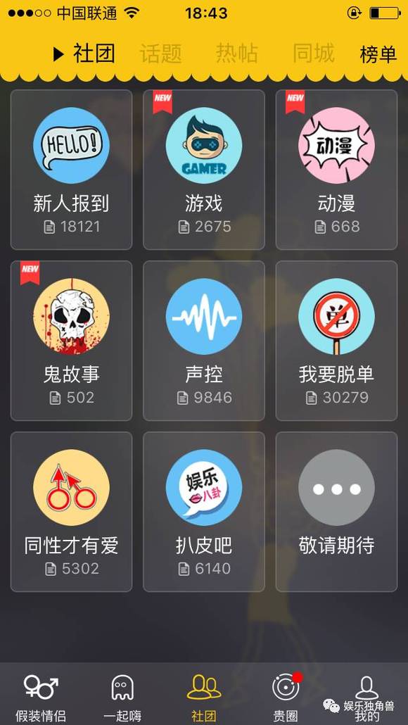 娱乐独角兽2月7日中午下载并查看了假装情侣APP,其开始页面写着“像呼叫专车一样呼叫情侣”。进入APP,在“社团”标签下已经没有了“爆照专区”和“啪啪啪那些事”两个版块。而据微信号三声此前的报道,这两个版块是色情内容的重灾区。看来在事件发酵后,假装情侣团队对产品进行了紧急修改。