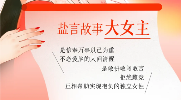 知乎就像它产出的女主一样野心外露。今年3月8日(注意,此时《执笔》还没播出),知乎盐言故事便推出了“红盐悦己”女主季活动,主动提炼出了本平台的大女主宣言,甚至在宣传中直言,“知乎盐言故事……有望成为大女主影视题材的又一宝藏作品库”。