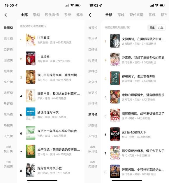 问答社区的基因令知乎的虚构写作多少都会带有脑洞大、反套路的特征。而番茄这边,下沉的用户群体、灵敏的个性化推荐,再加上免费模式下更加宽松的作者、读者关系,导致番茄网文非常多面、难以总结。这里既有令人瞠目结舌的年代后妈文,也有更舍得给爽感、加buff的大女主无CP。