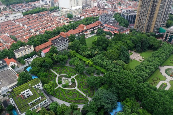 现在上海的复兴公园也是非常典型的法式园林建筑,以前是法国的军领地,改成公园之后,上海的市民都叫它法国公园。我们现在去复兴公园会看到它的造园风格和其他公园非常不一样,有一个大玫瑰园,还有很对称的林荫道迷宫的结构。