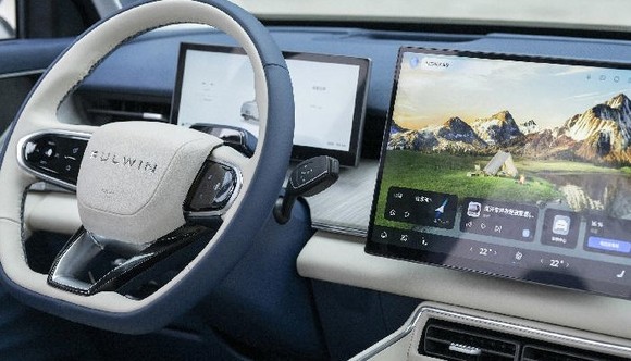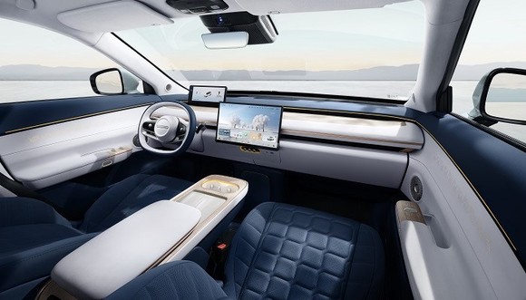 内饰使用了大理石和真木等材料,具有豪华感。中控台装配大尺寸悬浮屏,支持多种模式。前排采用贯通式设计提高便利性,具备电动调节功能。