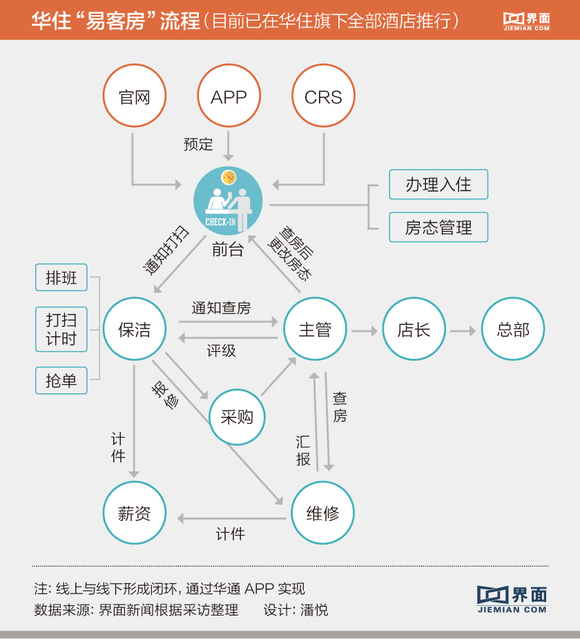 华住酒店集团CIO(首席信息官)刘欣欣为界面新闻记者总结了这套系统的关键:一是工作内容通过App推送;二是将操作中的步骤记录下来,精细化管理;三是让各个部门之间联动,提升效率。这套系统目前已经被称为“易客房”,作为产品向其他酒店同行出售。