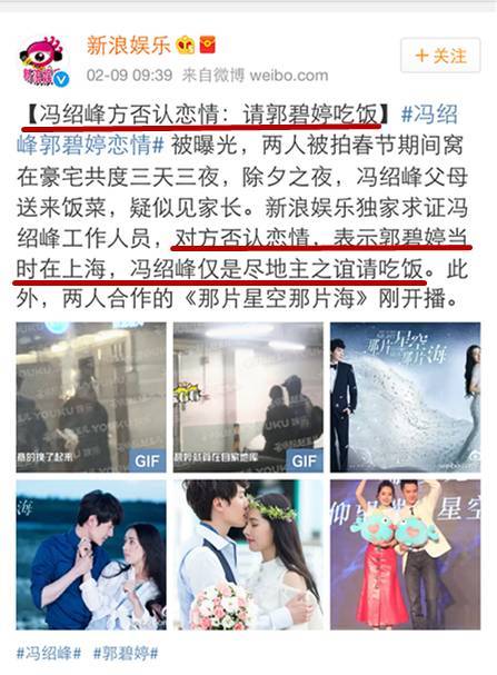 不久前,冯绍峰和郭碧婷传出了恋情。