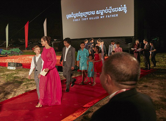 星期六朱莉第一次正式在柬埔寨献礼出现,参加《首先他们杀了我父亲》的首映,这是一部从儿童的视角关注波尔布特的红色高棉的故事。